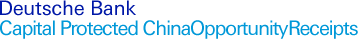 The Capital Protected ChinaOpportunity Receipts matured on 10 June 2004. If you would like to be kept informed of any other structured investments Deutsche Bank offers in the future, please click here.